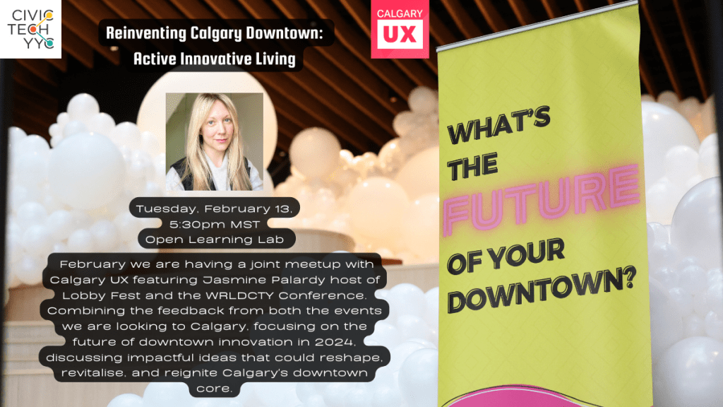 Feb 13th we are having a joint meetup with Calgary UX featuring Jasmine Palardy host of Lobby Fest and the WRLDCTY Conference.
