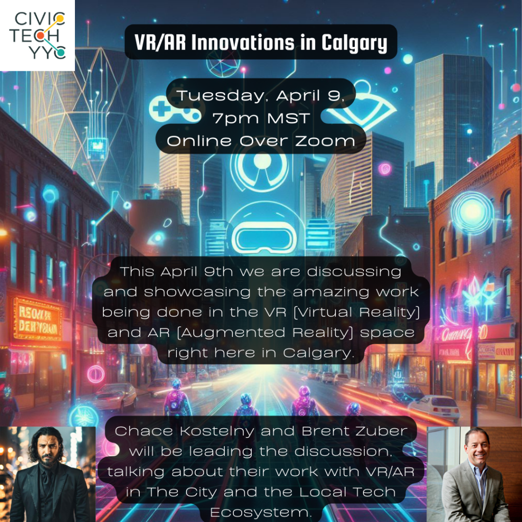 This April 9th for CivicTechYYC we are discussing and showcasing the amazing work being done in the VR (Virtual Reality) and AR (Augmented Reality) space right here in Calgary.